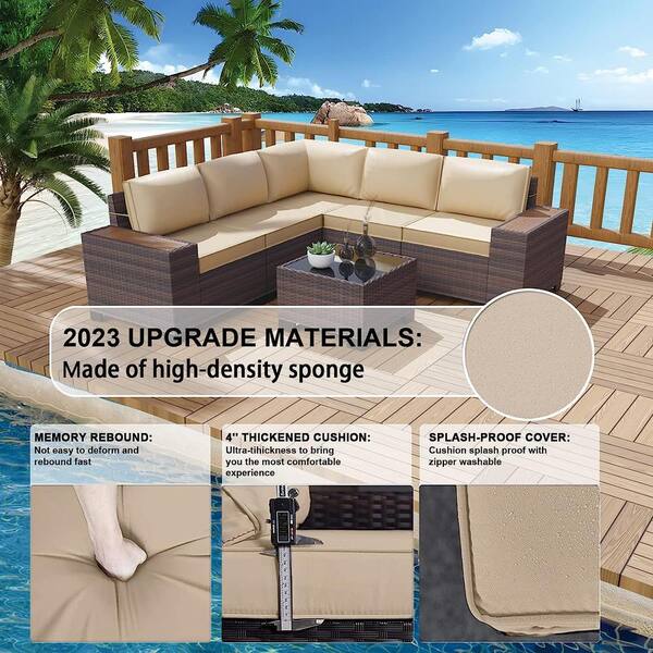 6-Piece Wicker Outdoor Sectional Set with Sand Cushion