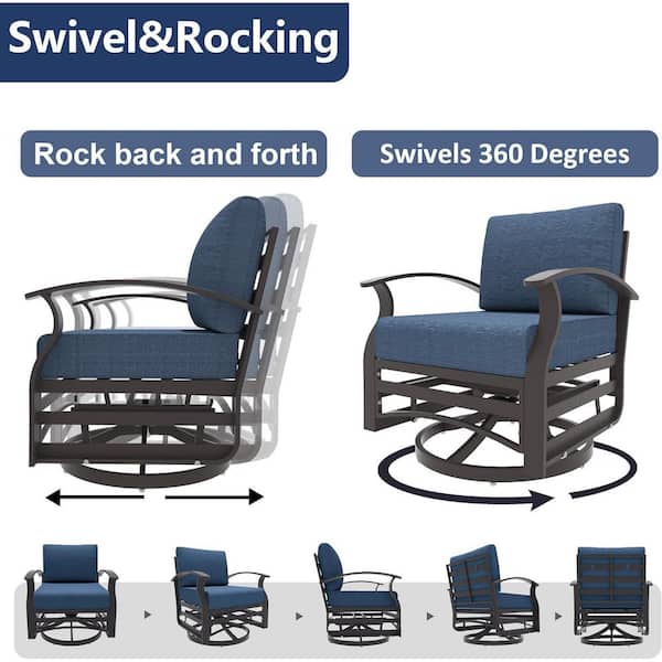 7-Piece Aluminum Patio Conversation Set with Armrest, 55000 BTU Firepit Table and Navy Blue Cushions