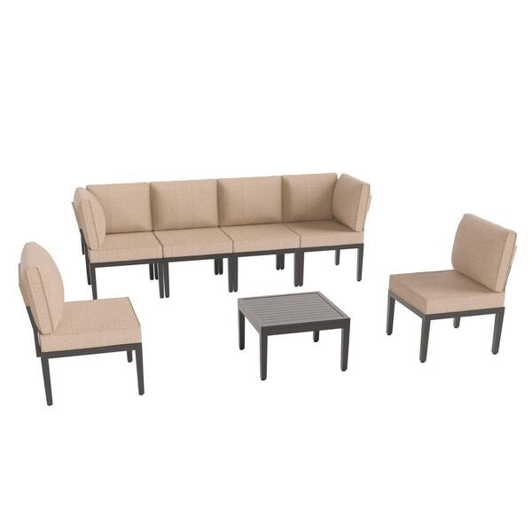 7-Piece Black Metal Patio Conversation Set with Sand Cushions, Coffee Table