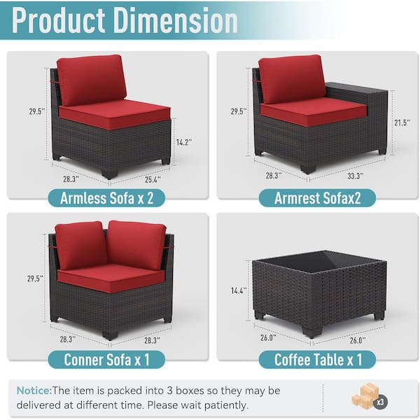 7-Piece Wicker Patio Fire Pit Set with 55000 BTU Gas Fire Pit Table, Coffee Table, Glass Wind Guard and Cushion Red
