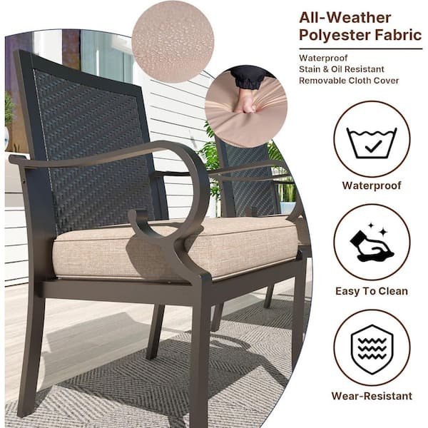 8-Piece Metal Patio Outdoor Dining Set with 6 Back-Woven Chairs, Rectangular Table, Umbrella and Sand Cushions, Garden
