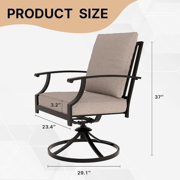 Brown Swivel Metal Outdoor Dining/Restaurant Rocking Chairs with Vertical Back and Sand Cushions (2-Pack)