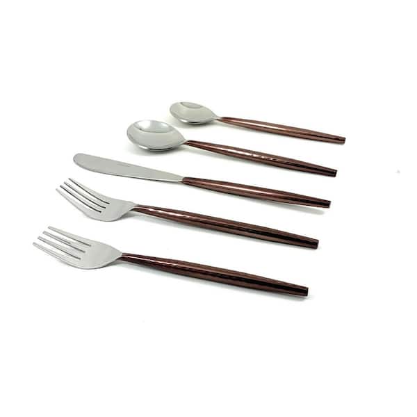 Hammered Stainless Steel Flatware 5-Piece Set-Brown (18/0)