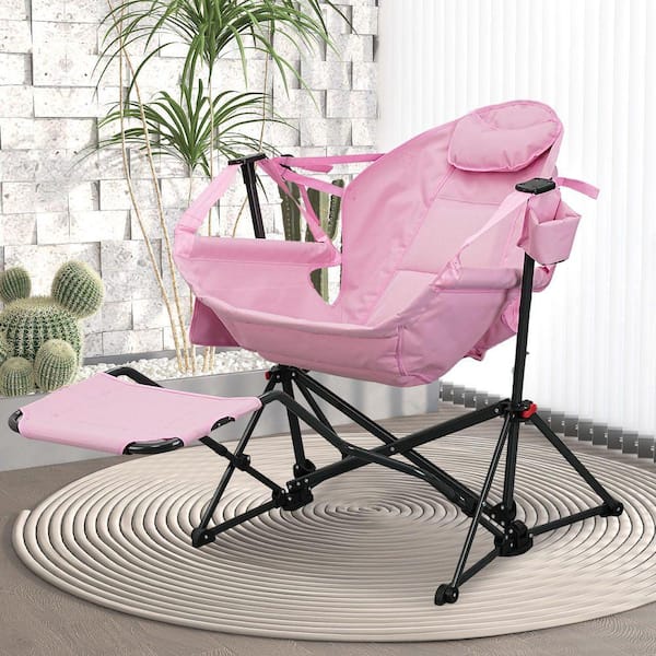 Hammock Camping Chair with Footrest Pink Polyester Foldable Portable Rocking Chairs