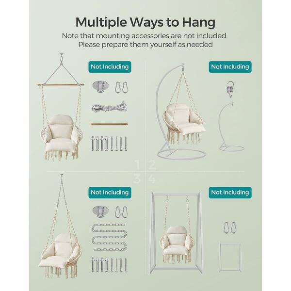 Hammock Chair with Large, Thick Cushion, Boho Swing Chair for Bedroom Holds up to 264 lbs., Cloud White