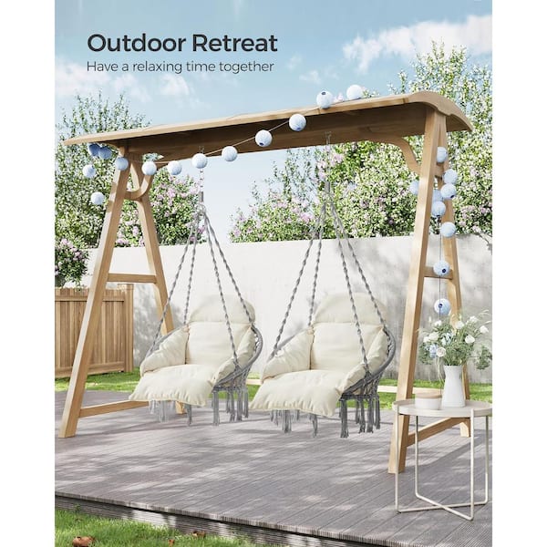 Hammock Chair with Large with Thick Cushion, Gray and Cloud White