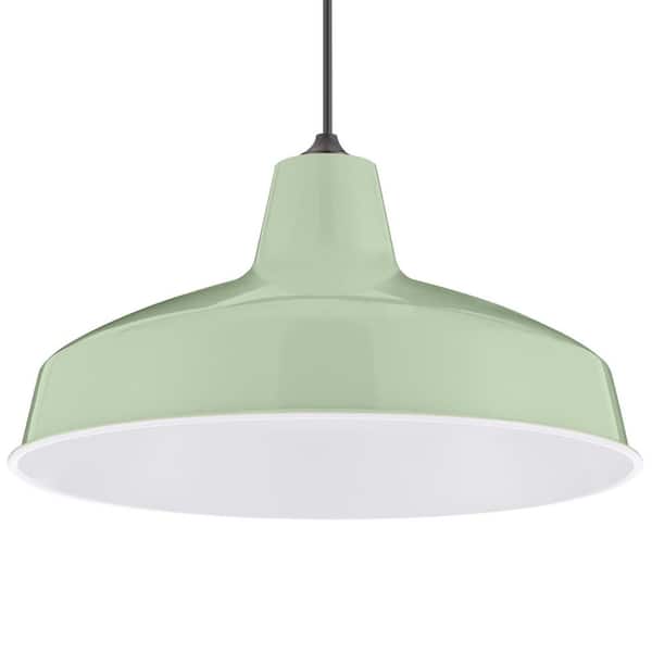 1-Light Light Green Warehouse Pendant with Metal Shade