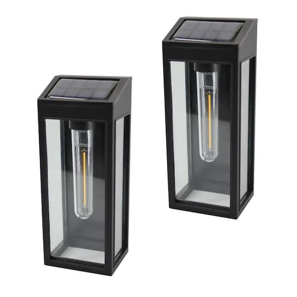 10 Lumen Black Outdoor Solar Wall Lantern Sconce Light with Integrated LED Bulb (2-Pack)
