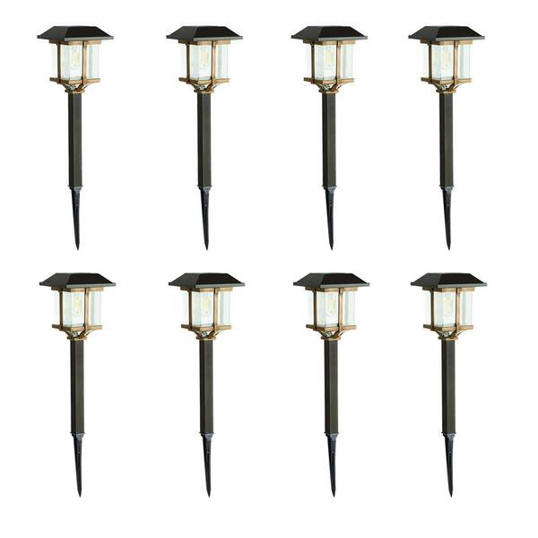 10 Lumens 2-Tone Solar Bronze and Warm Wood LED Landscape Pathway Light Set (8-Pack)