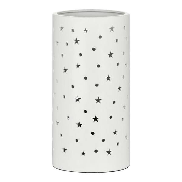 10 in. White Indoor Ceramic Up-Light with White Cut Out Pattern Shade