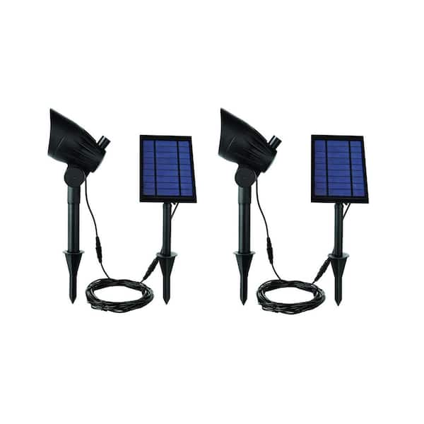 100 Lumens Black LED Outdoor Solar Metal Spotlight with Adjustable Lamp Head (2-Pack)