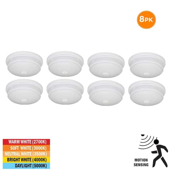 11 in. White Motion Sensing LED Flush Mount Indoor Outdoor Ceiling Light Adjustable CCT 830LM 11.5W (8-Pack)