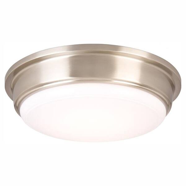 13 in. 180-Watt Equivalent Brushed Nickel Integrated LED Flush Mount with Frosted Acrylic Shade