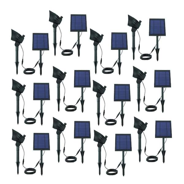 150-300 Lumens Black LED High-Low Metal Outdoor Solar Spotlight with Adjustable Lamp Head (12-Pack)