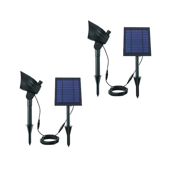 150-300 Lumens Black LED High-Low Metal Outdoor Solar Spotlight with Adjustable Lamp Head (2-Pack)