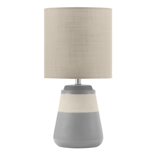 16 in. Grey Ceramic Table Lamp with Beige Fabric Shade
