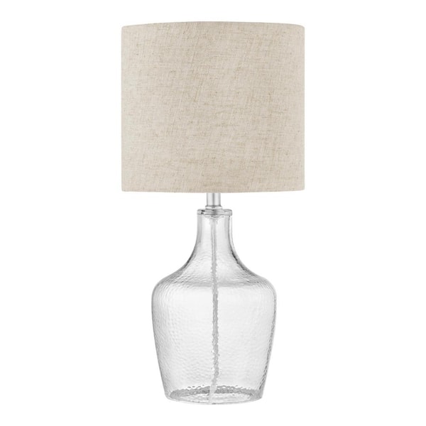 17.5 in. Clear Glass Table Lamp with Beige Fabric Shade