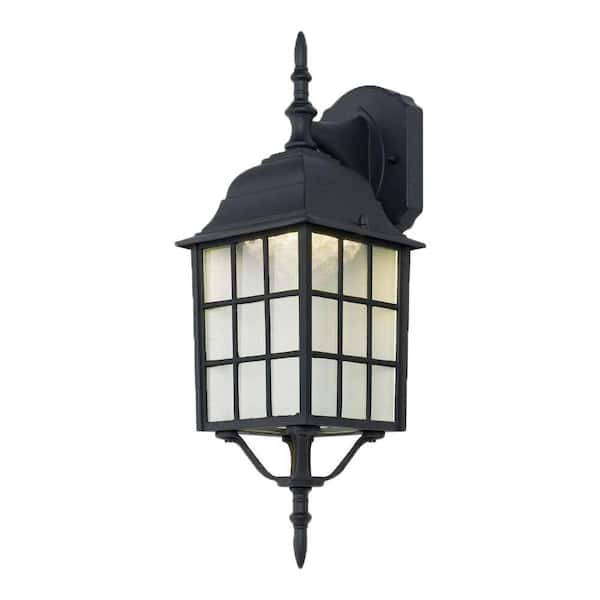 17.88 in. Black LED Outdoor Wall Light Fixture with Textured Glass