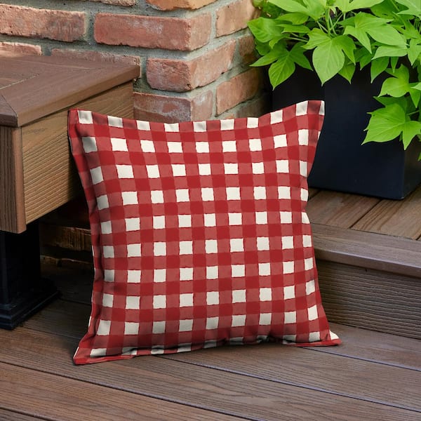 18 x 18 Watercolor Gingham Chili Outdoor Square Throw Pillow with Flange