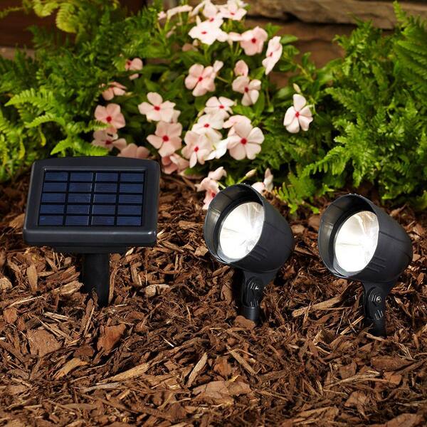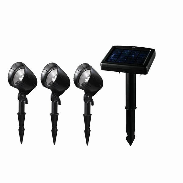 3-Light Black LED Outdoor Solar Spot Light Kit