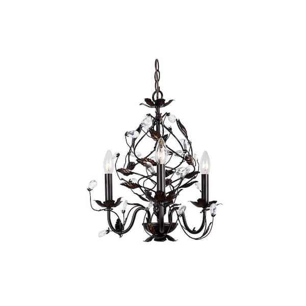 3-Light Oil Rubbed Bronze Chandelier Light Fixture with Hanging Crystal Beads