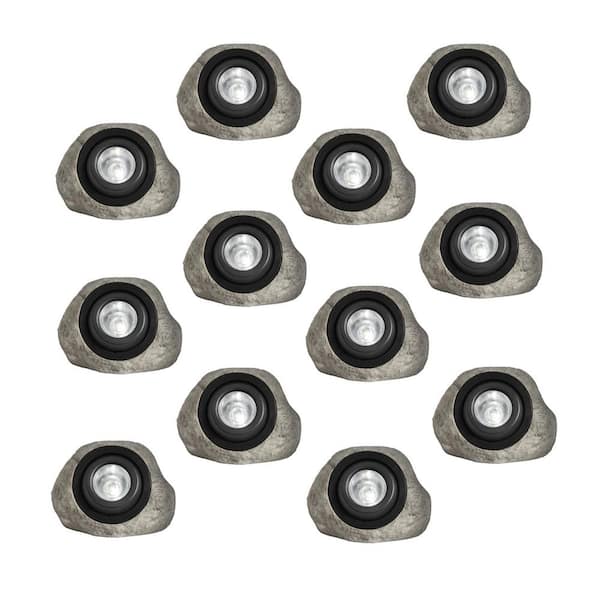 30 Lumens Gray Integrated LED Outdoor Solar Rock Spotlight with Adjustable Lamp Head (12-Pack)