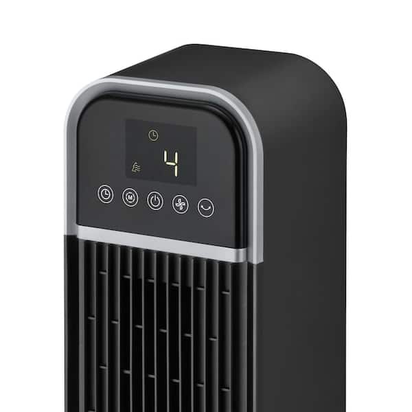 36 in. 4-Speed Oscillating Tower Fan in Black with Remote Control and Easy Carry Handle