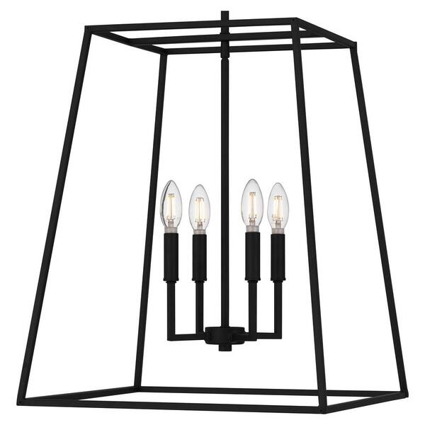 4-Light Matte Black Pendant Light with Open Cage Shade