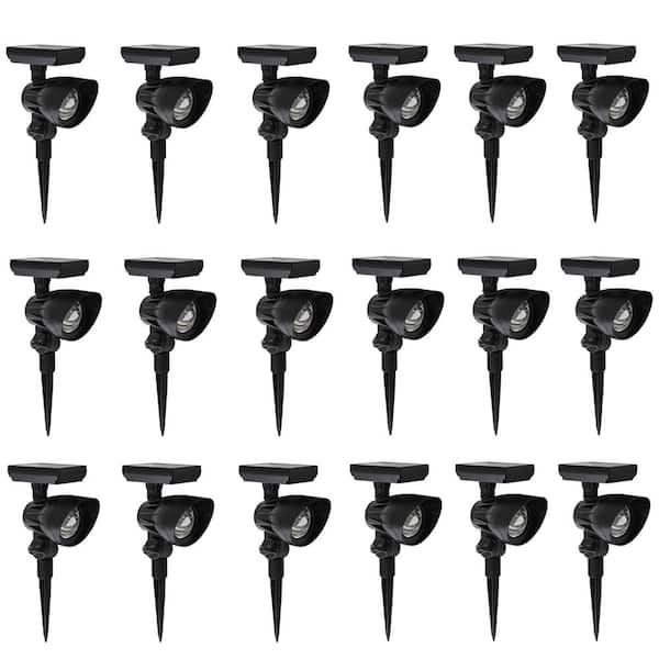 50 Lumens Solar Black Outdoor LED Landscape Spotlight (18-Pack)
