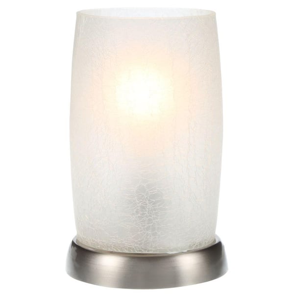 8.5 in. Brushed Nickel Accent Lamp with Frosted Crackled Glass Shade