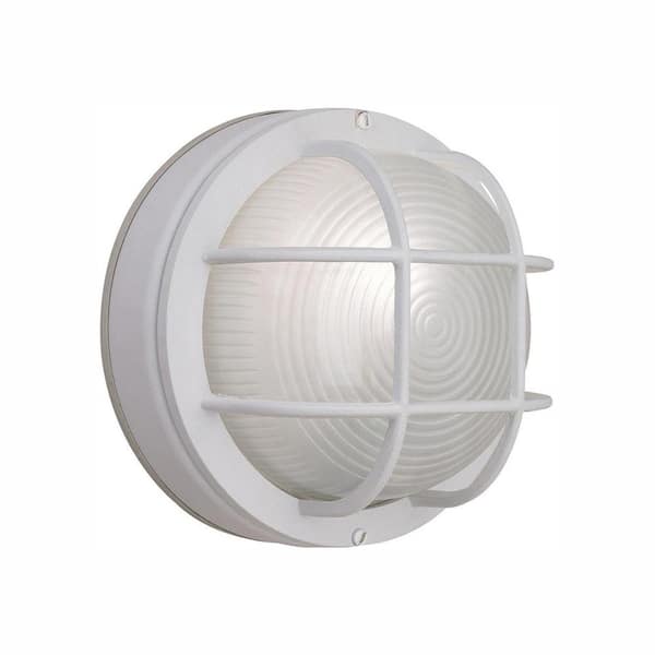8 in. White Round 1-Light Outdoor Bulkhead Wall Lamp