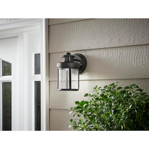 9.1 in. Black Motion Sensor Integrated LED Outdoor Wall Lantern Sconce