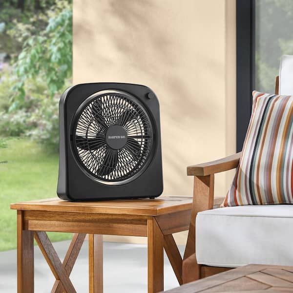 9 in. Rechargeable Indoor/Outdoor Personal Box Fan in Black with adjustable head