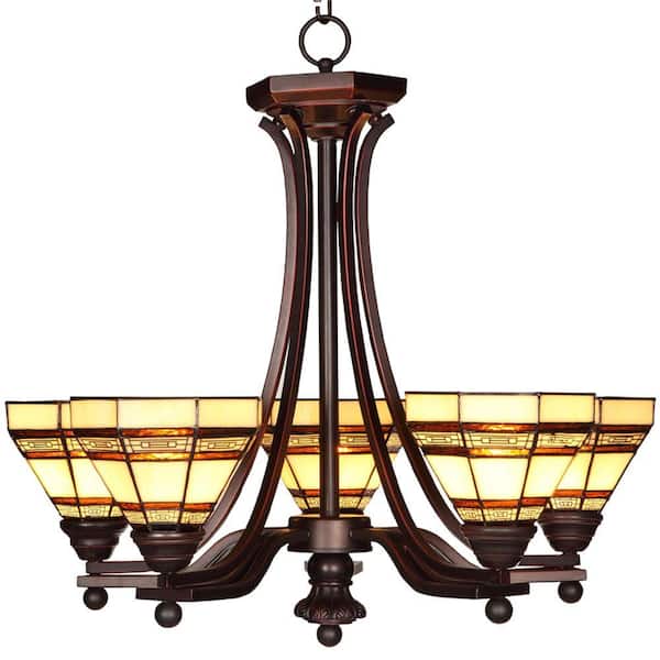 Addison 5-Light Oil Rubbed Bronze Chandelier with Tiffany Style Stained Glass Shades