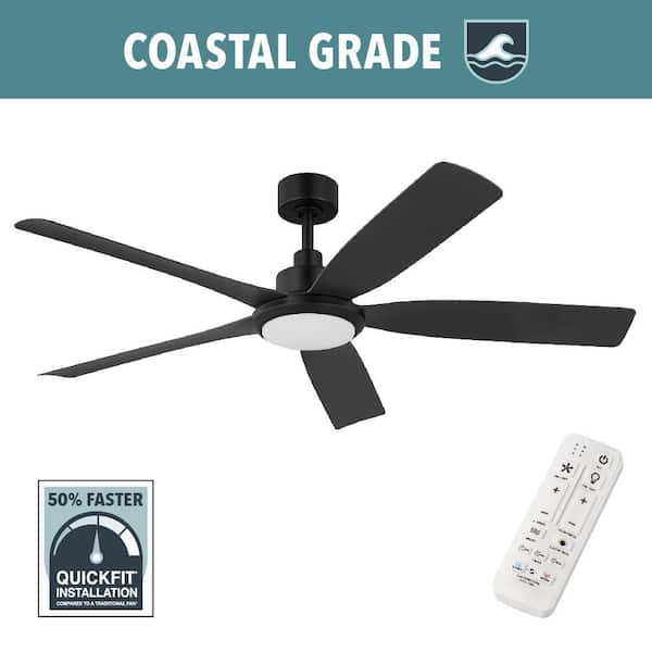 Amaia 56 in. Indoor/Outdoor Coastal Grade DC Motor Matte Black Ceiling Fan with Adjustable White LED and Remote Included