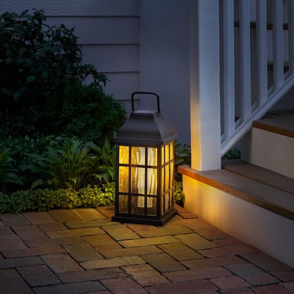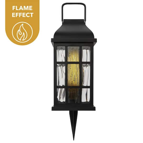 Ambrose 15 in. Black Plastic LED Flicker Flame Outdoor Solar Lantern Lamp