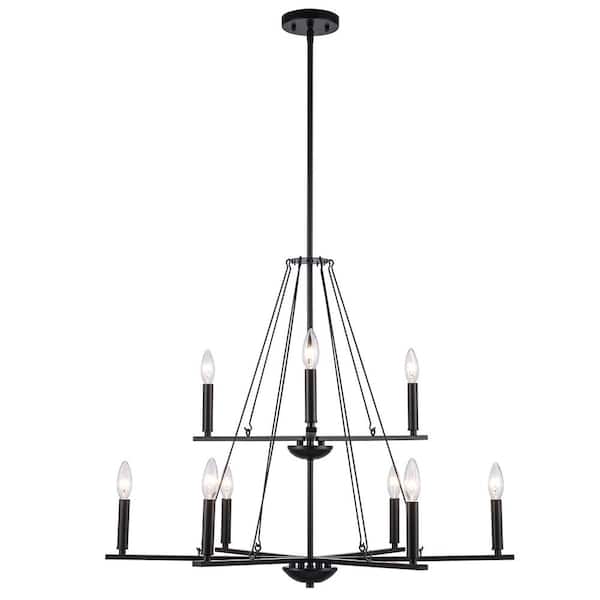 Amreen 9-Light Black Tiered Candle Chandelier Light Fixture