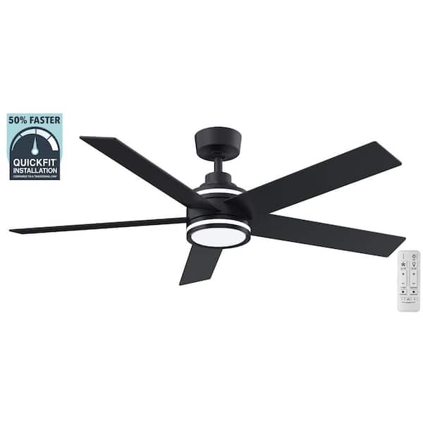 Ashburrow 52 in. Indoor Matte Black Ceiling Fan with Adjustable White LED Down and Upper Accent Light with Remote
