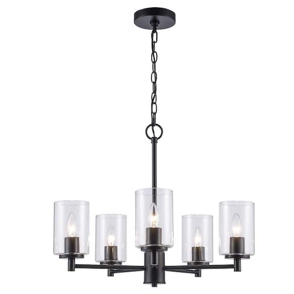 Ashewick 5-Light Black Chandelier Light Fixture with Clear Glass Shades