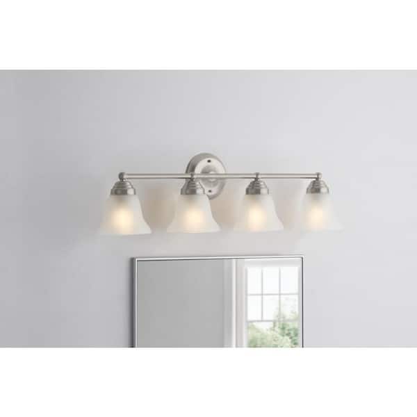 • Brushed nickel 4-light vanity with a simple, traditional style