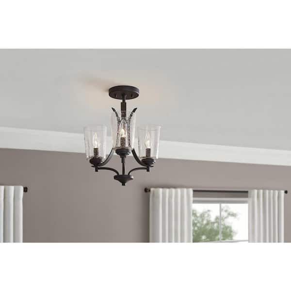 Autumnhill 14 in. 3-Light Matte Black Semi-Flush Mount with Clear Glass Shades