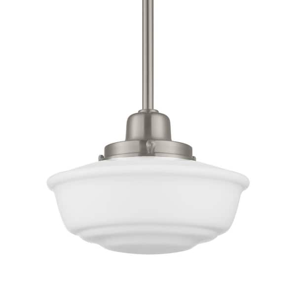Belvedere Park 1-Light Brushed Nickel Pendant Hanging Light with Frosted Opal Glass Shade, Farmhouse Kitchen Lighting