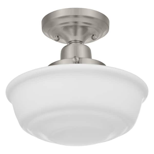 Belvedere Park 11 in. 1-Light Brushed Nickel Schoolhouse Round Semi Flush Mount, Farmhouse Ceiling Light