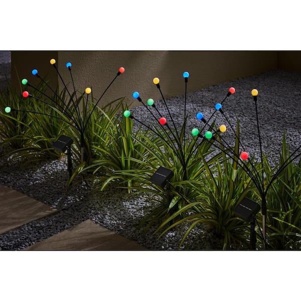 Black Solar Powered Integrated LED Multi-Color Weather Resistant Firefly Path Light