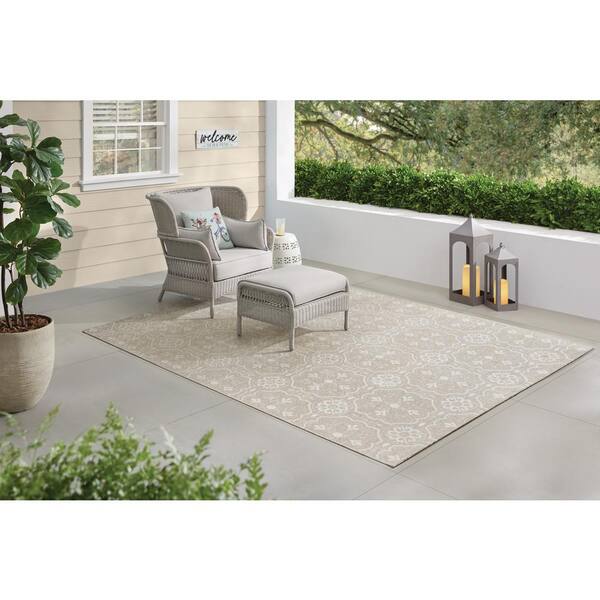 Blue 6 ft. x 9 ft. Neutral Tiles Indoor/Outdoor Area Rug