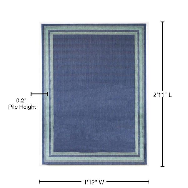 Border Aqua Navy 1 ft. 11 in. x 2 ft. 11 in Indoor/Outdoor Accent Rug