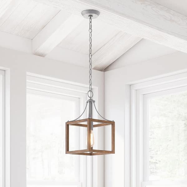 Boswell Quarter 1-Light Galvanized Mini-Pendant with Painted Chestnut Wood Accents