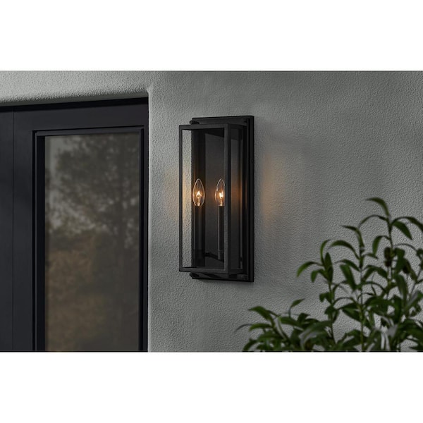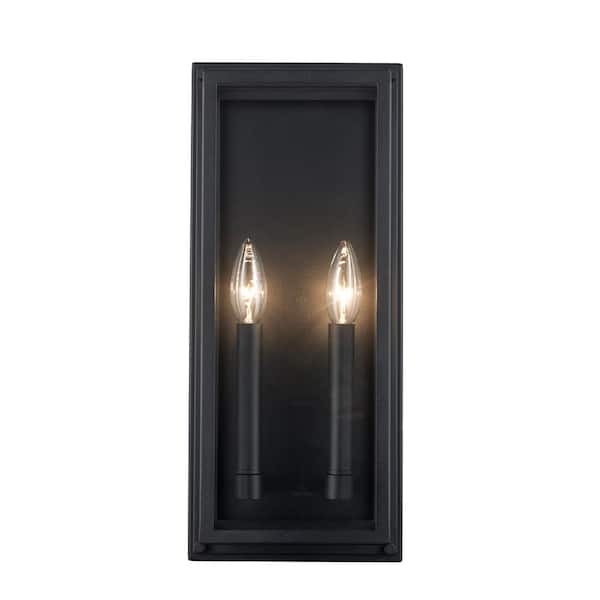 Bradford 18 in. 2-Light Black Outdoor Wall Light Fixture with Clear Glass