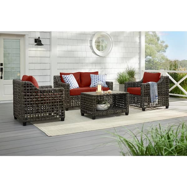 Briar Ridge 4-Piece Brown Wicker Outdoor Patio Conversation Deep Seating Set with Sunbrella Henna Red Cushions