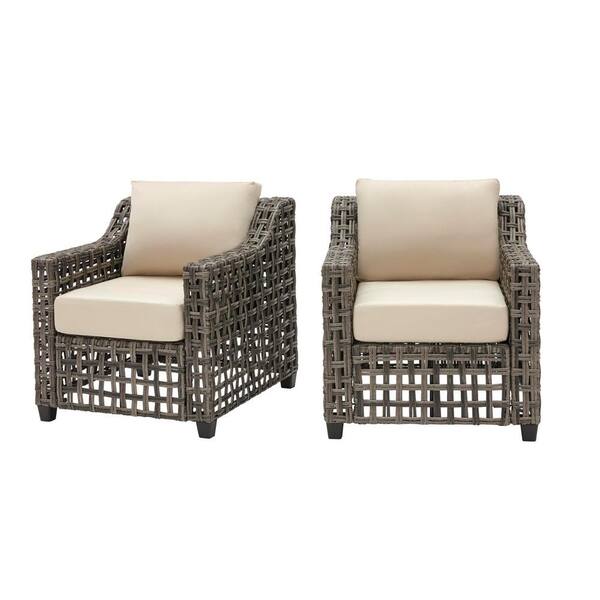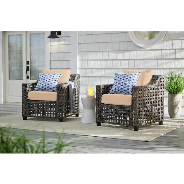 Briar Ridge Brown Wicker Outdoor Patio Deep Seating Lounge Chair with Sunbrella Beige Tan Cushions (2-Pack)